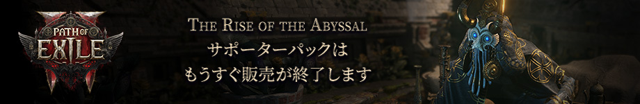 日本時間12月13日にPath of Exile 2にLast of The Druidsコンテンツアップデートがリリースされると、Rise of the AbyssalサポーターパックはPath of Exile 1および2のストアでの販売が終了します。今がトラーサスの処刑人および正義シリーズのアイテムを手に入れる最後のチャンスです。