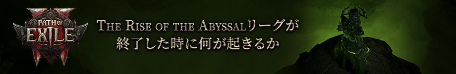 アビサルとの戦いは終わりません、というのはそのコンテンツがLast of the DruidsコンテンツアップデートでPath of Exile 2のコアに追加されるからです。詳細については、12月5日午前4時にlivestreamでの配信中に説明します。 Rise of the Abyssalsリーグは12月8日午後1時 PSTまたは(お客様のタイムゾーンで、(12月 08, 2025 4:00 午後 (GMT-5)(お客様のタイムゾーンで表示されています)に終了します 。 全てのキャラクターおよびそのアイテムはアーリーアクセスリーグのスタンダードまたはハードコアリーグに移動されます。ワイプはありません、ですのでワイプが完了したらキャラクターをアーリーアクセスリーグのスタンダード/ハードコアリーグでプレイし続けることができます。 Last of the Druidsが日本時間12月13日にリリースされると、新リーグを新鮮な経済でプレイすることができます。 Rise of the Abyssalをプレイしていただいた全ての方に感謝を捧げます。近日登場予定のFate of the Vaalリーグを皆さんが体験するのを見るのが待ちきれません。すぐに行われるライブ配信でお会いしましょう! |